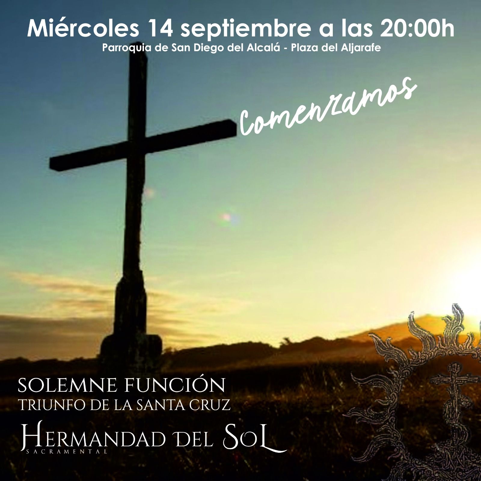 Miércoles 14 de Septiembre de 2022 a las 20:00. En nuestra Parroquia de San Diego de Alcalá. FUNCION SOLEMNE a Nuestro Amantísimo Titular TRIUNFO DE LA SANTA CRUZ