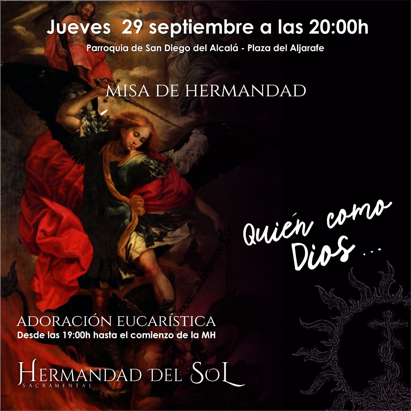 MISA DE HERMANDAD JUEVES 30 de JUNIO de 2022 A las 20 h. ADORACIÓN EUCARÍSTICA A las 19 h. PARROQUIA SAN DIEGO DE ALCALÁ