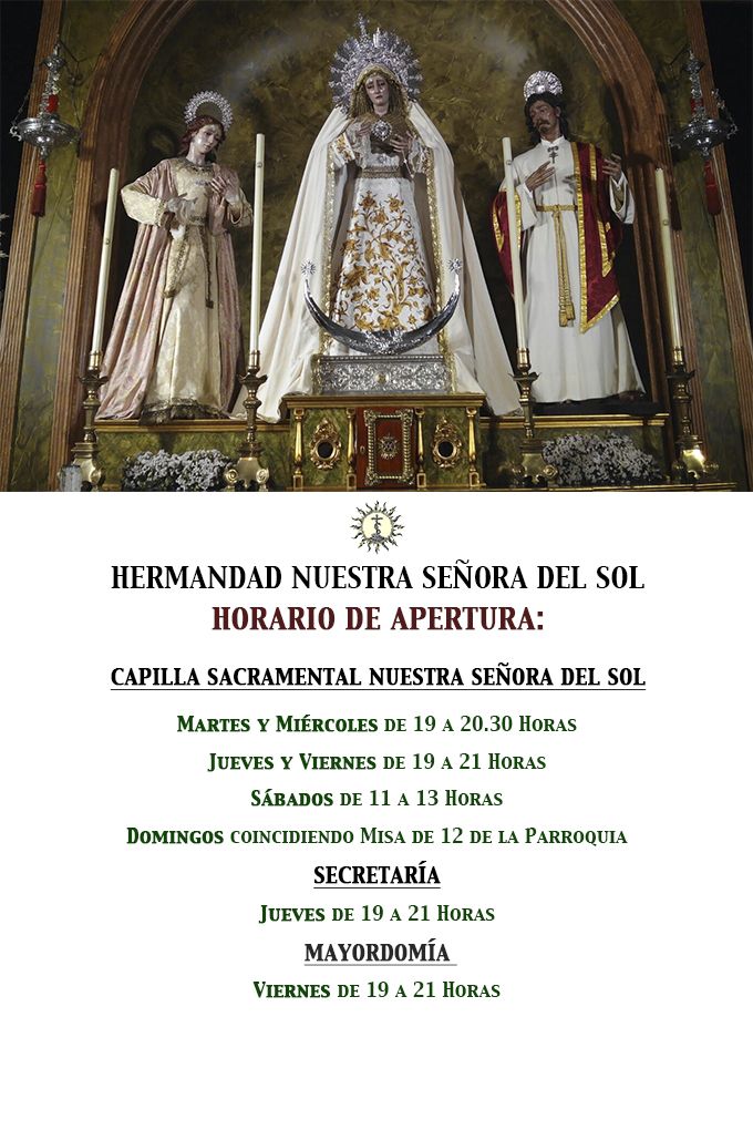 Estos serán los nuevos horarios de este Invierno tanto de la Secretaría como de la Capilla Sacramental